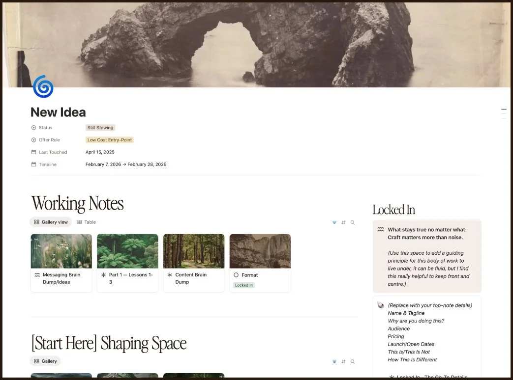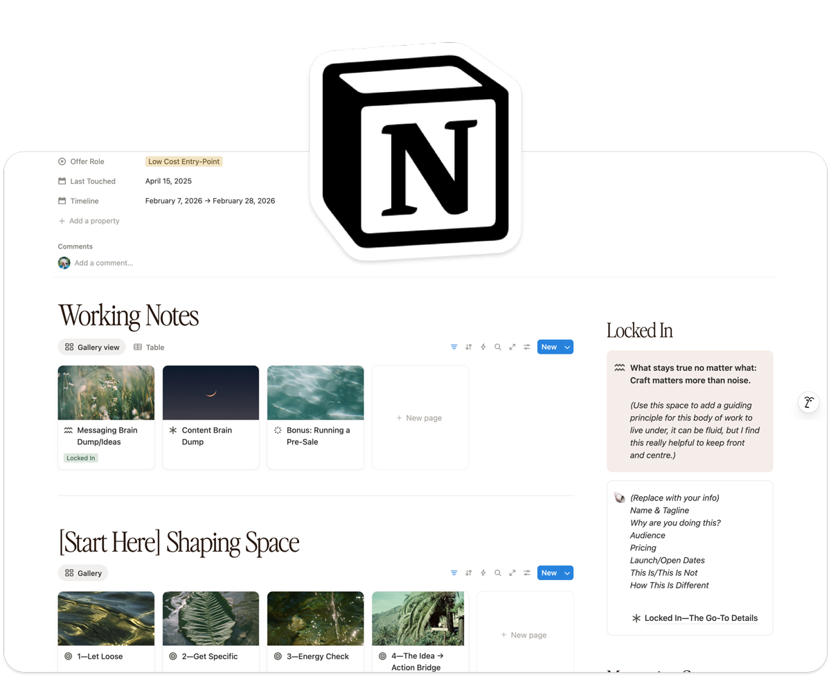 A Notion toolkit for turning your half-baked ideas into fully built-out offers, ready to launch.